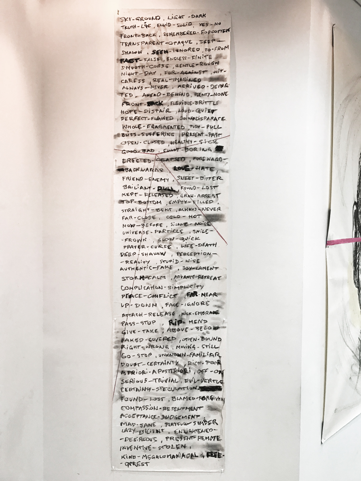 Words — 2017, oil stick, charcoal, pencil No.2 & ink on paper, 61cm x 128cm