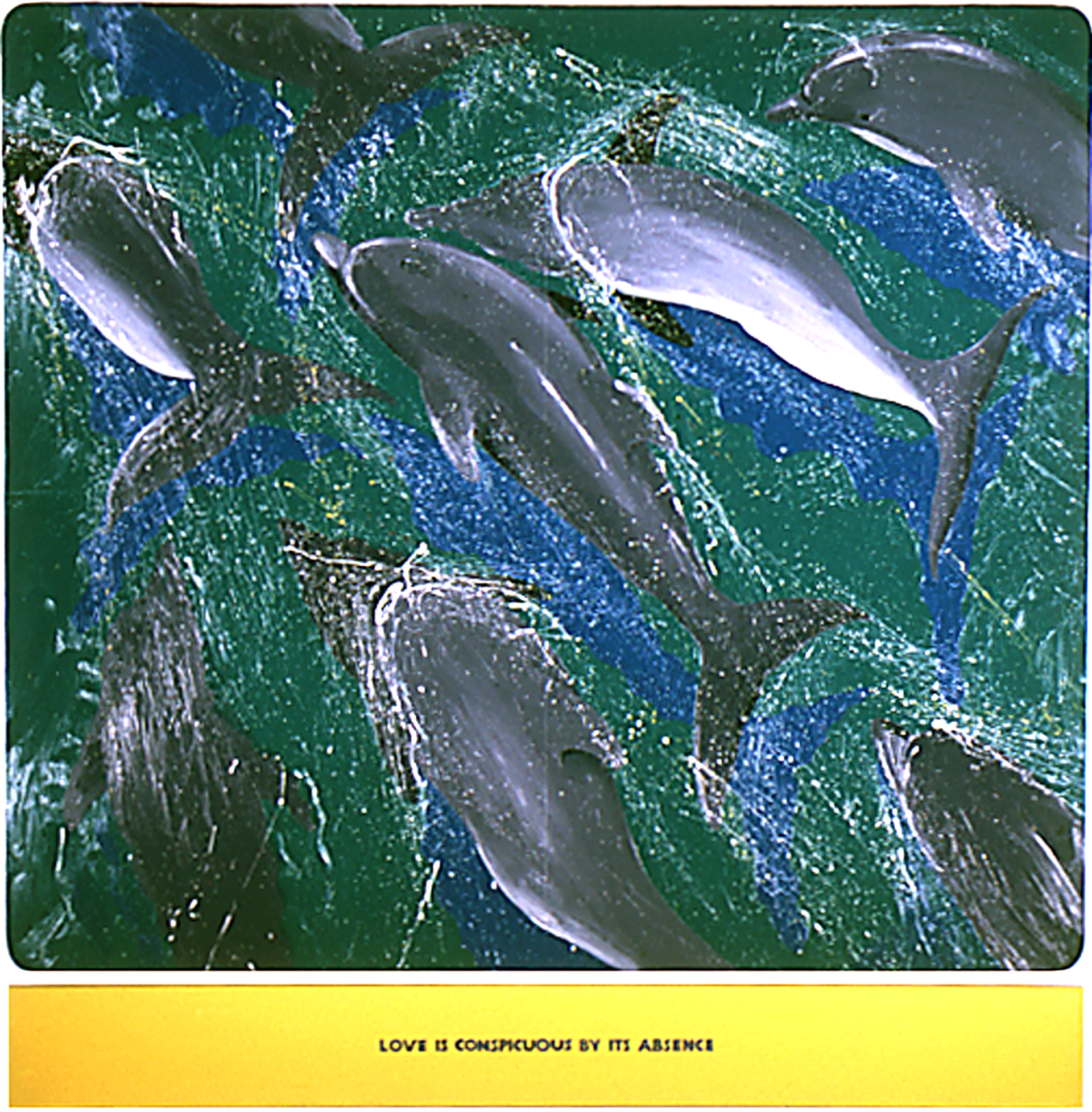 Having established the format, Lamprecht inserts therein pairings of highly charged images and equally provocative texts which force the viewer into quandaries of multiple and contradictory interpretations. Reading, in the sense of interpreting ideas and translating signs, is essential to each piece, and the act of engaging in some sort of transcription which each picture demands puts the viewer in the forbidding position of trying to piece together for himself what Lamprecht’s commentary actually is. In some cases, one assumes that the artist is using the paired image and text in a tongue-in-cheek fashion, in a way that one feels we are expected to sympathize with his point of view. Nonetheless, underlying Lamprecht’s presumably ironic subversion is a sincerity of value and totality of perception.