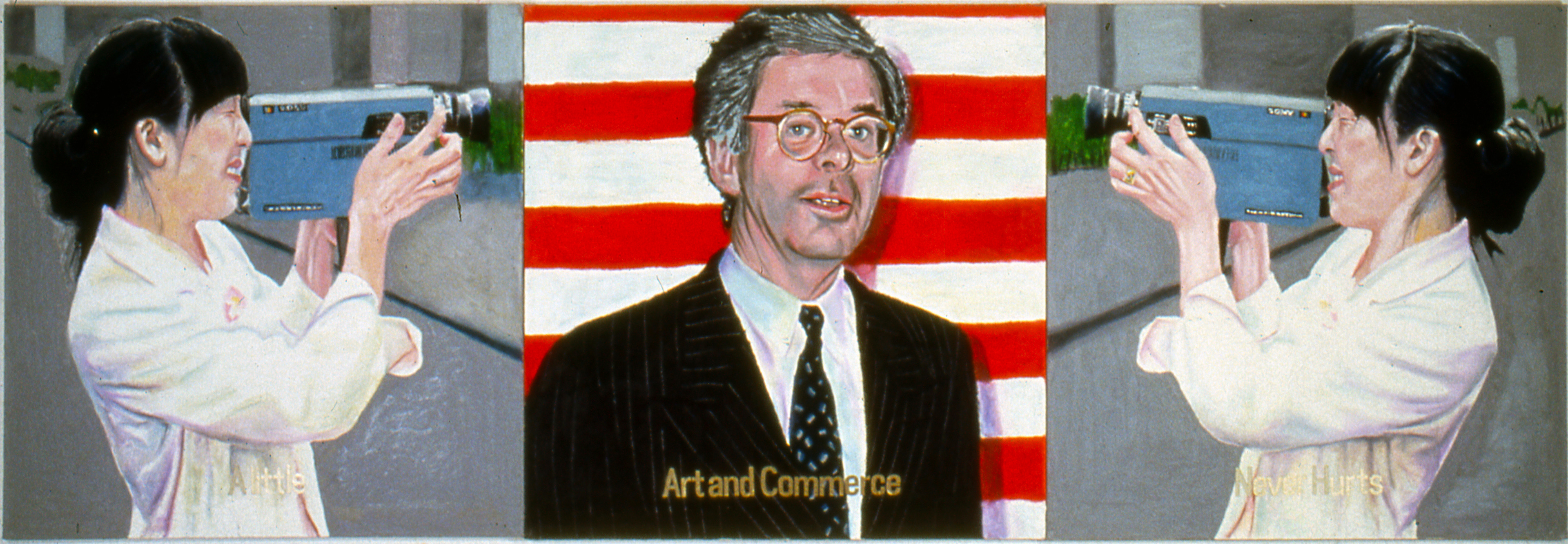 A Little Art and Commerce Never Hurts — Oil stick on canvas and transfer type, 120" x 40", 1984