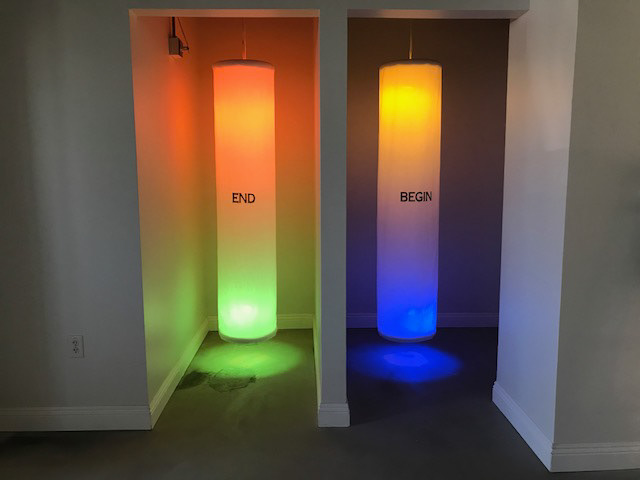 Contained Landscapes: End & Begin — mixed media installation, 16.5”x16.5x72” each (42cm x 42cm x 183cm)